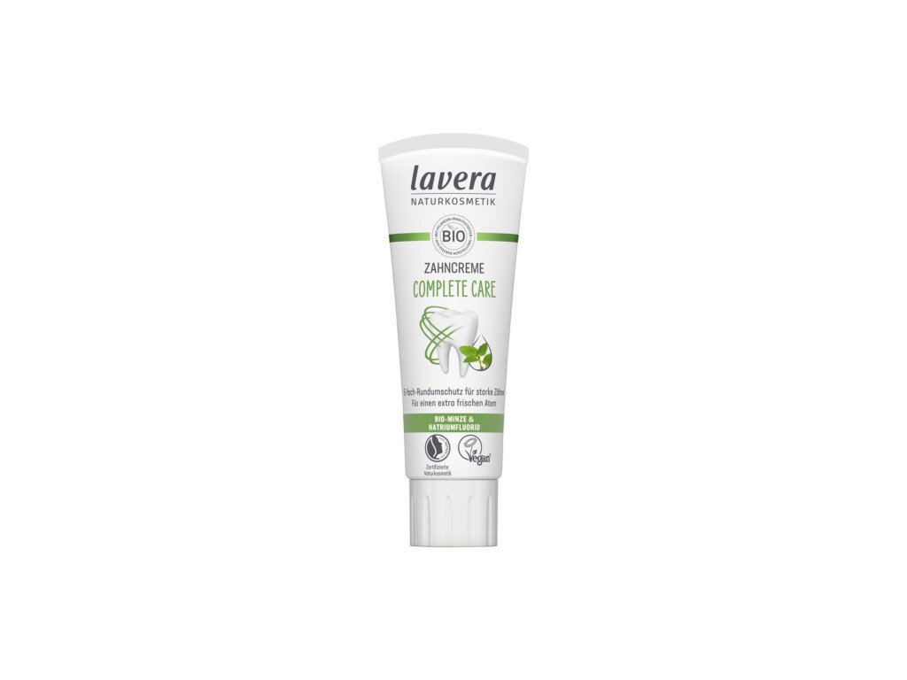 Zubní pasta Lavera je certifikovaná přírodní kosmetika podle standardu NATRUE. Neobsahuje syntetické složky, geneticky modifikované suroviny ani složky testované na zvířatech. Šetrná k životnímu prostředí.